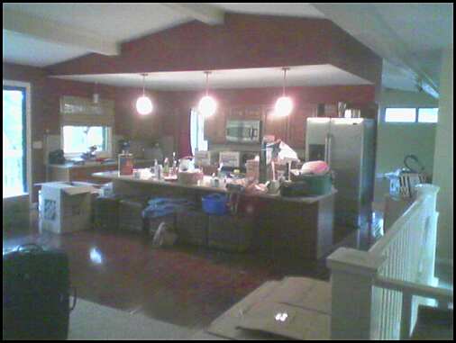 Anyway, here is another view of my office. For those of you who are interested, here is my kitchen (also halfway unpacked). If you look close, you will see the previous owner did indeed leave brown stools in the kitchen.